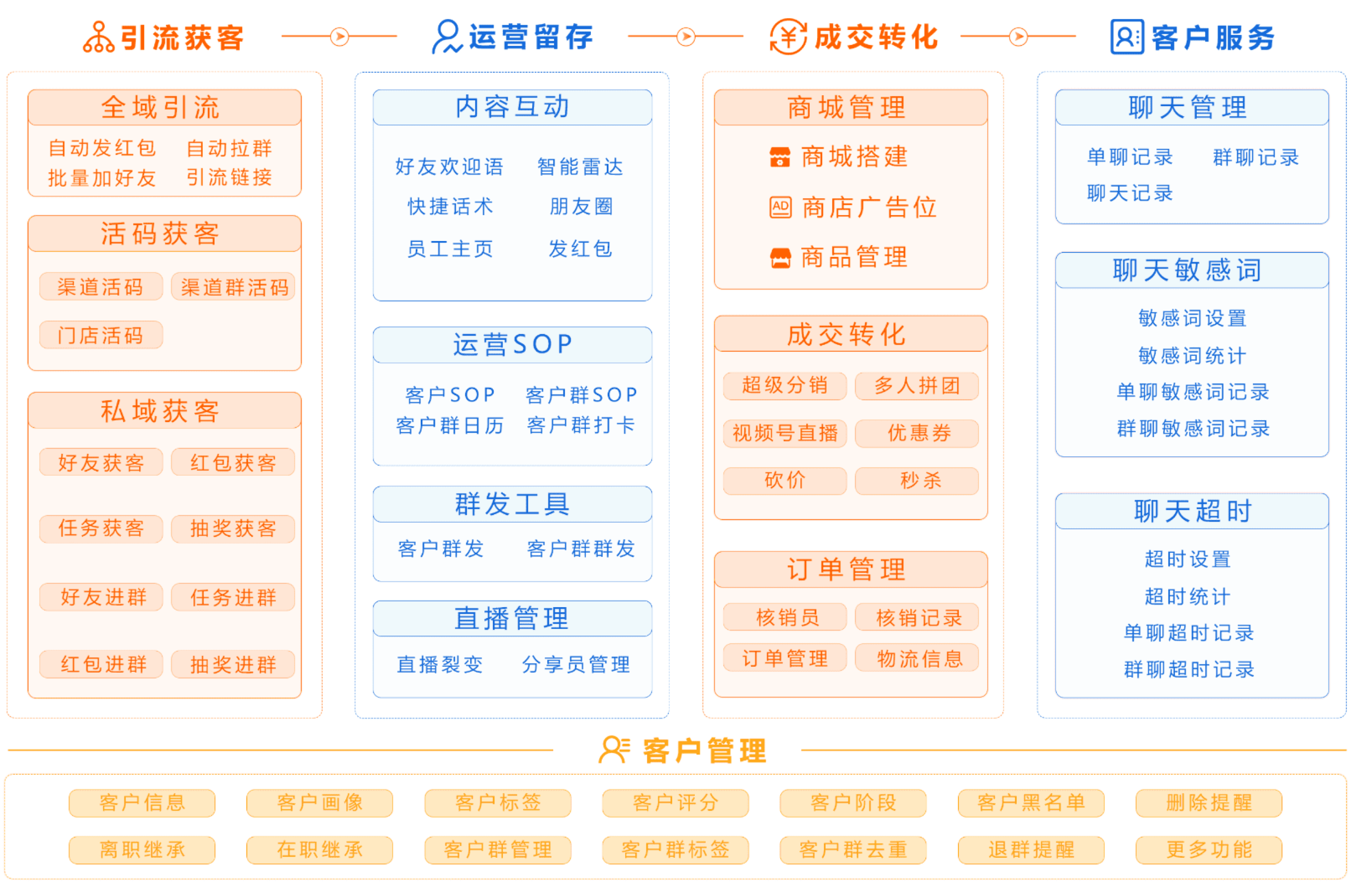 ? 100+功能覆蓋【引流獲客-運營(yíng)留存-客戶(hù)管理】模塊